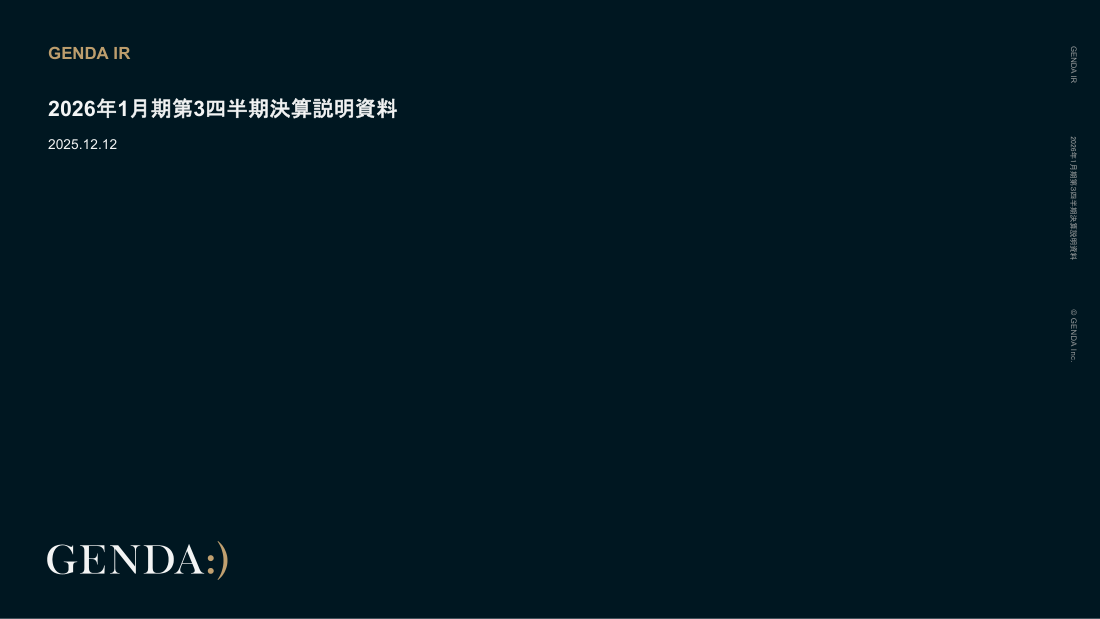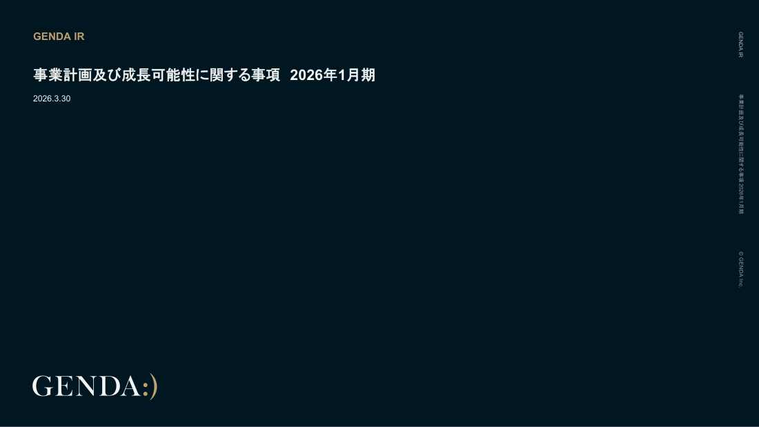 カブシキガイシャジェンダ上場サービス業9166EDINET: E38739決算期: 01月期